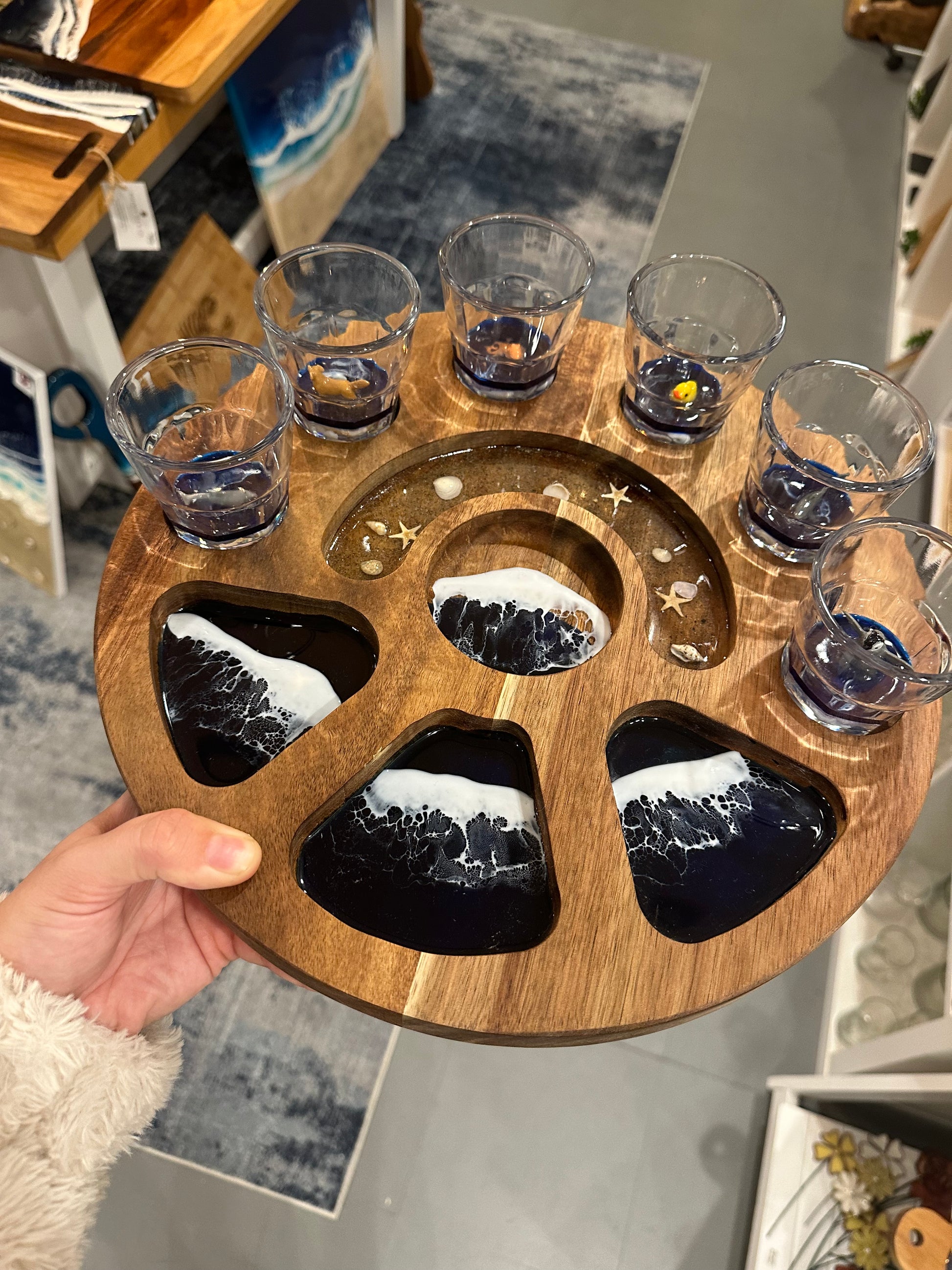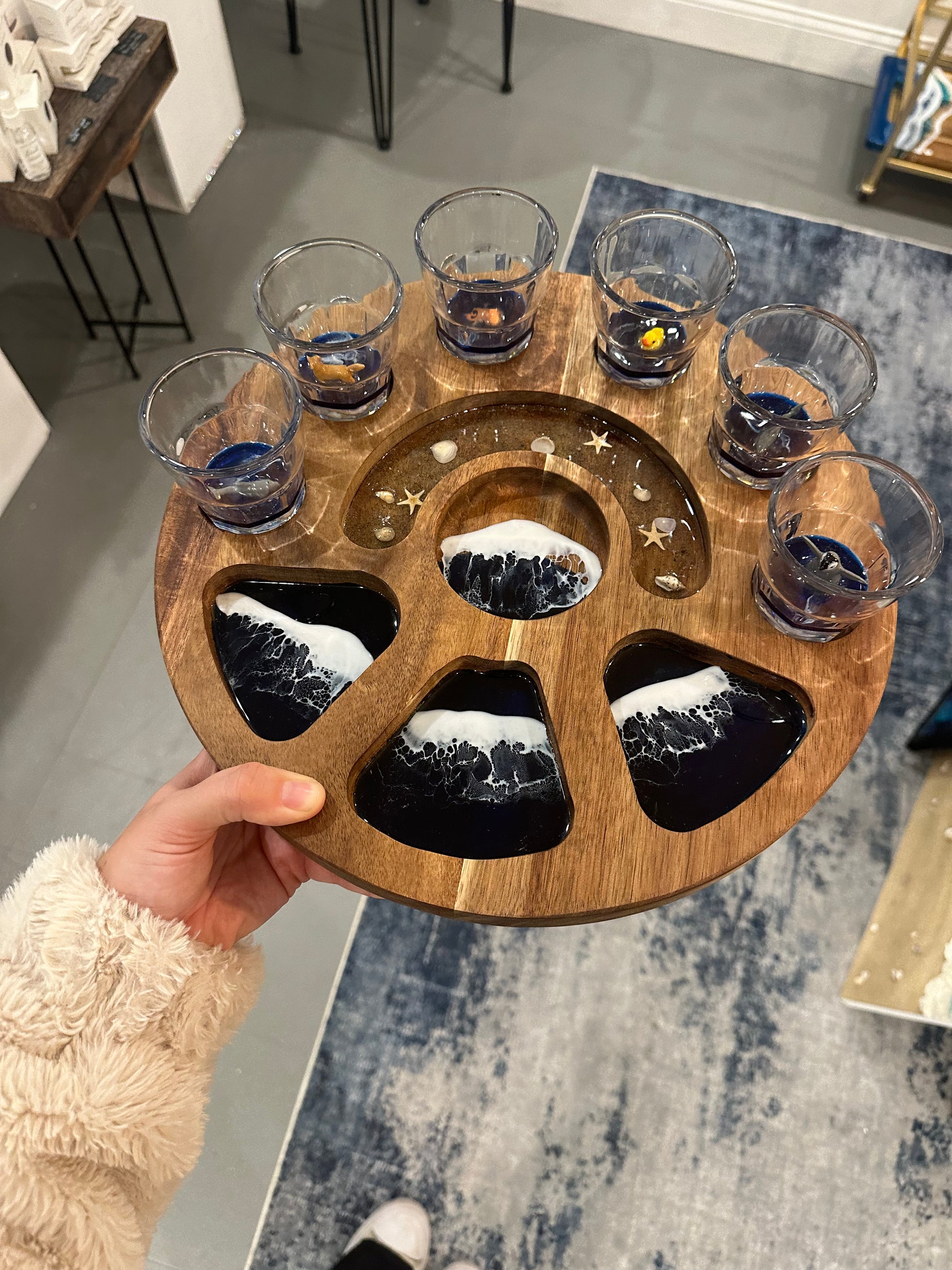Includes 6 shot glasses and tray! Perfect for serving shots, limes, salt, and snacks!